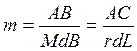 Частным масштабом длин m называют отношение бесконечно малого отрезка на плоскости к соответствующему ему отрезку на эллипсоиде. Поскольку в конформных проекциях масштаб не зависит от направления, то для его вычисления можно взять отношение любых отрезков.