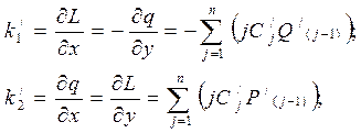 где P/ j = P/ 1P/ (j-1) – Q/ 1Q/ (j-1); Q/ j = P/ 1Q/ (j-1) + Q/ 1P/ (j-1) при условии P/ 0 = 1; Q/ 0 = 0. Это также гармонические полиномы, удовлетворяющие уравнению Лапласа. Здесь следует иметь в виду также P/1 = Dx; Q/1 = Dy.