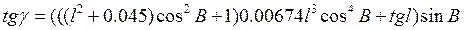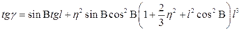 Здесь g1 – сближение меридианов, выражающее угол между изображением меридиана данной точки на плоскость проекции с прямой, параллельной изображению осевого меридиана, вычисляется по формуле