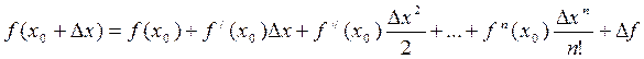 Погрешность вычисления значения функции Df оценивают с помощью остаточного члена в форме Лагранжа. Если, например, учтено n степеней разложения, то погрешность