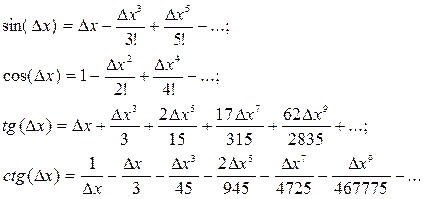 Если применить формулу Тейлора для некоторых наиболее часто встречающихся функций, получим: