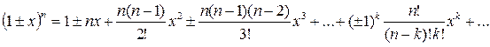 Биномиальное разложение (n – любое, как положительное, так и отрицательное, как целое, так и дробное):