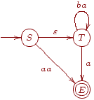 , где Q = {S,T,E}, I = {S}, F = {E} и