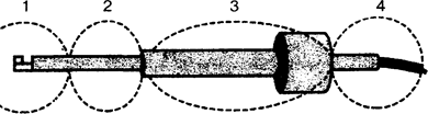 Зона 2 представляет часть электрода, расположенную вне троакара и недоступную обзору. Повреждения изоляции здесь наиболее опасны.