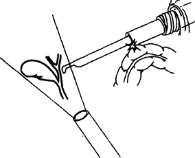Рис.№ 5. Использование пластмассового фиксатора с металлическим троакаром опасно.