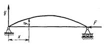 Для выяснения условий, при которых становятся возможными различные состояния равновесия, рассмотрим пример (задача Эйлера) о сжатии стержня Критическая сила в этой задаче будет равна такой осевой силе, при которой стержень может находиться в слегка изогнутом состоянии. При малых прогибах стержня можно использовать дифференциальное уравнение изогнутой оси в виде
