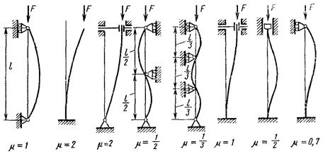 Fkp = p²EJ / (ml)², где m - коэффициент приведения длины
