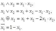 Двоичные функции можно также задавать многочленами, в которых используются операции сложения, вычитания и умножения действительных чисел. Так, непосредственно проверкой убеждаемся, что