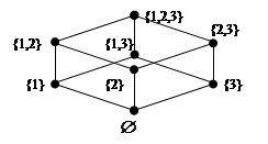 Таким образом на рисунке 7.1.11 изображена диаграмма булевой алгебры всех надмножеств множества {1,2,3}.