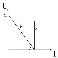 Вольтамперная характеристика источника тока имеет вид рис. 1.7, где зависимость«a»-вольтамперная характеристика идеального источника тока, а зависимость «в»-вольтамперная характеристика реального источника тока, имеющего конечное внутреннее сопротивление. На схеме реальный источник изображается в виде идеального источника тока и подключенного параллельного ему сопротивления (рис. 1.6 (б)). Необходимо отметить, что обе схемы замещения