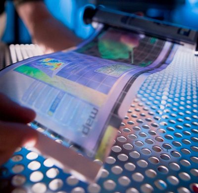 Неломающиеся дисплеи создаются при помощи технологии литографии SAIL, позволяющей четко выровнять отпечаток на подложке вне зависимости от искажений, вносимых в процесс. При использовании SAIL производство идет не на больших пластинах, а на разматывающейся пленке. Это снижает издержки (Рис. 8).