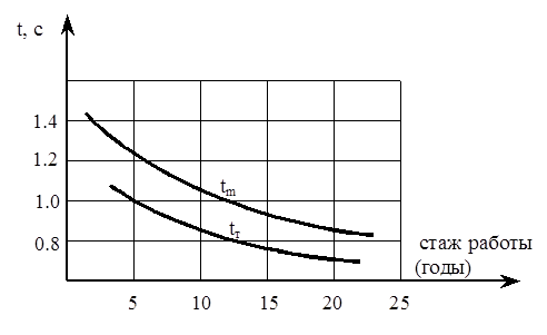| Время сенсомоторных реакций, с. | ||
