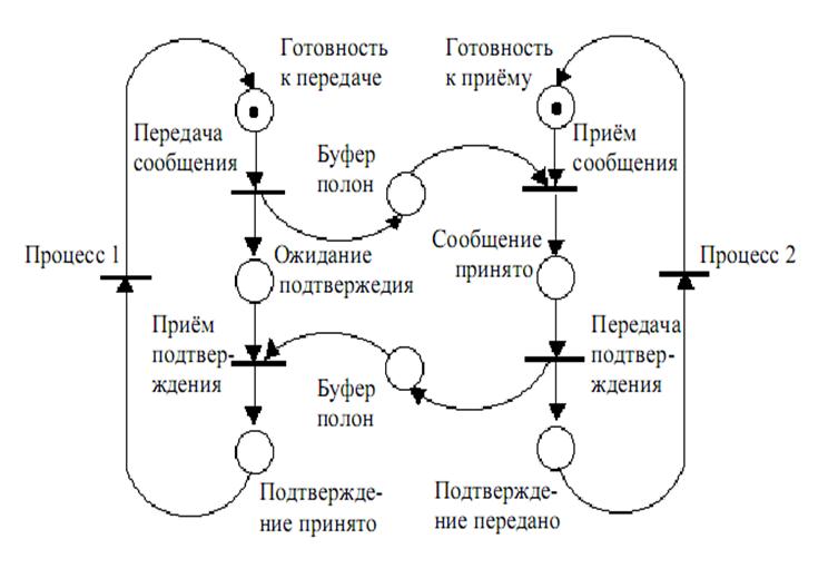 Упрощенная модель протокола обмена данными между двумя процессами