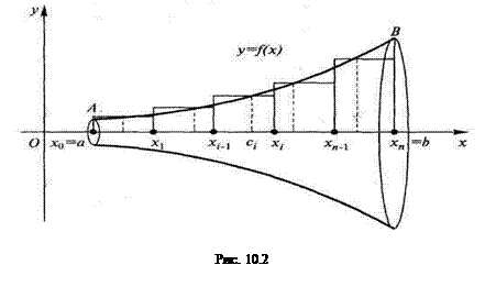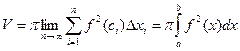 ,предел интегральных сумм (10.6) при n→∞ существует и равен объему V рассматриваемого тела вращения: