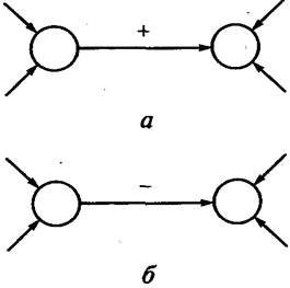 а — положительная связь;