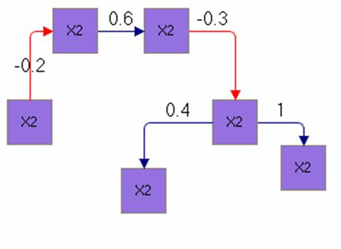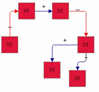 В знаковом графе влияние одного фактора на другой обозначается знаками «+», если увеличение (уменьшение) одного фактора приводит к увеличению (уменьшению) другого, или «-», если увеличение (уменьшение) одного фактора приводит к уменьшению (увеличению) другого.
