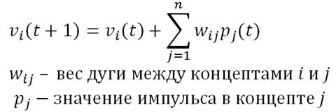 Описания зависимости факторов (влияния концептов друг на друга) и соответственно, их изменения могут иметь лингвистические значения («низкий», «незначительный», «высокий» и др.), имеющие свою числовую интерпретацию в виде функций принадлежности.
