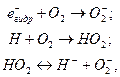 поскольку концентрация кислорода в этой системе значительно выше концентрации перекиси водорода, образующейся при облучении. Радикалы НО2 (или