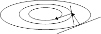 В начальной точке проводим касательную к линии уровня и делаем шаг оптимальной величины в направлении перпендикуляра к касательной в данной точке. Получив новую точку, повторяем действия и так далее.