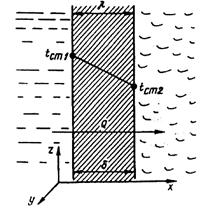Пусть температура стенки со стороны горячего теплоносителя равна tст1, а со стороны холодного — tст2; теплопроводность материала стенки