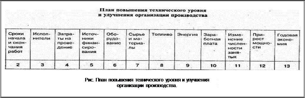 ► Структура плана повышения технического уровня и улучшения организации производства предприятия может быть следующей: