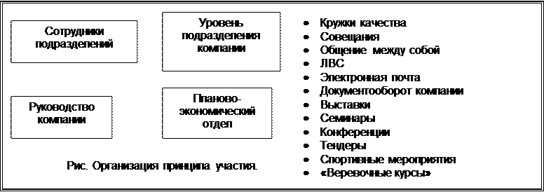 o Основано на принципе участия. На предприятии максимально мобилизуются творческие способности каждого работника.