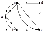 Множество пар a = { ас, са, ав, ва, се, ес, ве, cd, de }, a Ì A ´ A можно назвать отношением с интерпретацией «город i непосредственно связан с городом j авиатрассой». На риc. 1.1 а) пары выделены «*». Бинарное отношение может быть изображено графом, в котором вершины суть элементы алфавита «А», а дуги соответствуют выделенным парам < i, j > отношения a,направление дуги указывается стрелкой от «i»к «j». Для примера 1.3 на рис. 1.1 б) построен соответствующий граф, задающий отношение a.