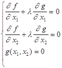 Тогда необходимое условие min функции f(x1,x2) при наличии ограничений может быть записано следующим образом:
