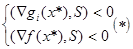 Показать, что на луче с вершиной x* и направлением S будут лежать вблизи вершины некоторые точки, которые будут допустимыми и в них целевая функция строго меньше чем в точке x*