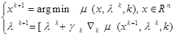 Метод сходится к (x*,l*) со скоростью геометрической прогрессии.