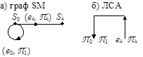 г) P ={ р 1, р 2, …, рm } – набор правил (команд машины); где вид правила (команда SM) – р = { S (t), e (t), П (t) ® S (t + 1)}.