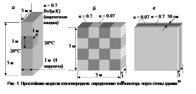 Для трехслойной стены (рис. 1, в) подберите толщину теплоизоляционного слоя так, чтобы теплопотери через нее были на 20 % ниже, чем через кирпичную стену (рис. 1, а).