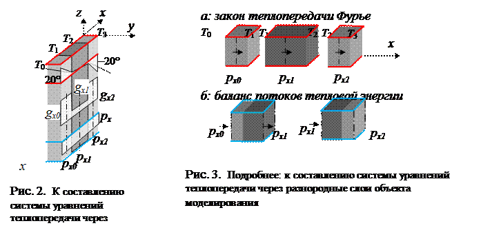 px 0 = 0.07(T 1 – T 0)/0.25, px 1 = 0.7(T 2 – T 1)/0.5, px 2 = 0.07(T 3 – T 2)/0.25 (рис. 2, закон теплопередачи Фурье [2]);