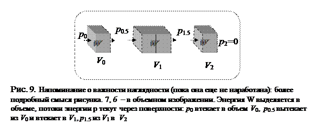 К уравнениям теплопередачи надо добавить условия баланса тепловых потоков – закон сохранения энергии (рис. 7, б или в). Вспомните, что мы строим модель установившегося распределения температур, т.е. того состояния тепловых потоков, когда температура в каждом малом объеме уже перестала изменяться, наступило равновесие (баланс) между выделяющейся в этом объеме тепловой энергией и выходящей из него через его поверхность.