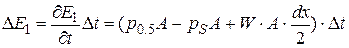 Для составления баланса обычно приравнивают нулю сумму всех энергий, добавляющихся в выбранный объем за счет тепловыделения (W ×D V 1) и через поверхности p 0.5× A – p S× A. [6] В результате уравнение установившегося баланса потоков энергий имеет вид