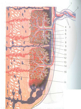 Поверхность зрелых ворсин равна 12-14 м2; общая длина ворсин, сложенных продольно, достигает 50 км; общая площадь – 100 м2.
