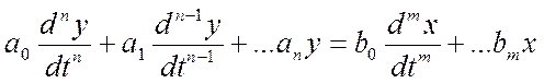 Математические модели могут быть как в виде одного уравнения, так и в виде систем уравнений. В одномерном случае имеет место связь между одной входной и одной выходной переменными и их производными: