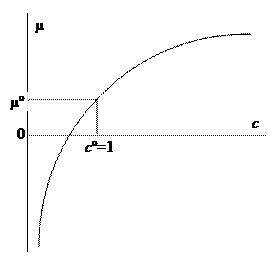 Это уравнение эвристическое, предложенное логическим путем для идеальных растворов. С ним возникает не мало сложностей. Далее вспомним об этом, когда в теории растворов будет введена активность вместо концентрации. При малых концентрациях m становится отрицательным, при больших – положительным (логарифмический график). Значение m° относится к стандартной концентрации с °= 1 моль/л.