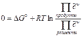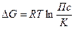 Такая форма уравнения удобна для быстрого определения знака DG, и соответственно, направления реакции при данных концентрациях. Например, в растворе П с > K. Отношение под знаком логарифма больше 1, логарифм положителен и DG тоже положительно. Идет обратная реакция.