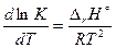 RT ln K = –D rН ° + T D rS ° => ln K = –D rН °/ RT + D rS °/R. После дифференцирования получаем