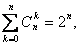 число k - элементных подмножеств множества из n элементов, то сумма в левой части есть число всех подмножеств.
