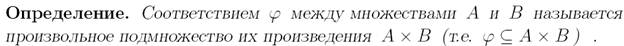 1. Любое соответствие может быть задано в виде списка, элементами которого являются пары, определяемые этим соответствием.