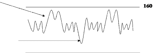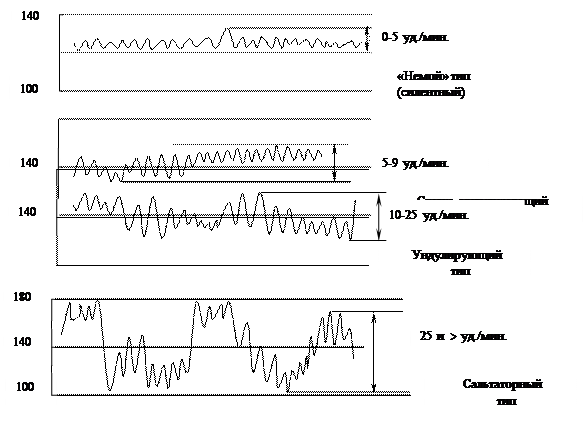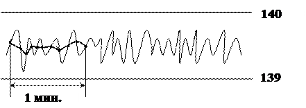 Частоту осцилляции определяют количеством пересечений линии, проведенной через середины осцилляции, за 1 минуту. По частоте различают следующие типы вариабельности БР: