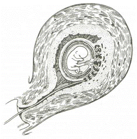 · 0 степень зрелости – плацента в виде хориальной пластинки; вещество плаценты однородное (гомогенное), без эхогенных уплотнений; базальный слой не идентифицируется; характерна в сроках беременности от 27 до 30 нед;