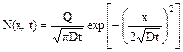 Целью второго этапа диффузии является получение заданного распределения примеси. Высоколегированный поверхностный слой полупроводника, образованный на первом этапе диффузии, служит источником примеси, количество Q которой определено уравнением (3.7). Поверхность x = 0 считается абсолютно непроницаемой, т.е. поток примеси через эту поверхность в любое время отсутствует, поэтому граничное условие может быть записано в виде