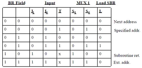 Input Logic Truth Table For A Microprogrammed Sequencer