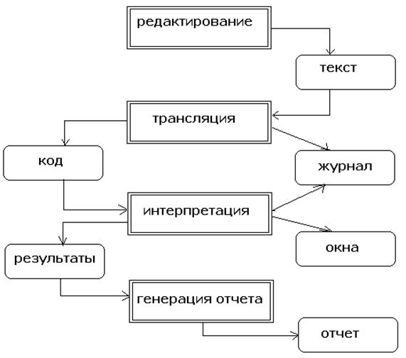 В тот момент, когда транзакт входит в некоторый блок, на исполнение вызывается подпрограмма интерпретатора, соответствующая типу этого блока, а после ее выполнения транзакт «пытается» войти в следующий блок.