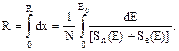 При известных Sn(E) и Se(E) интегрирование (3.20) дает общее расстояние R, пройденное движущимся ионом с начальной энергией E0 до его остановки,