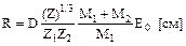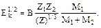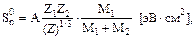 Здесь Z1 и Z2 - атомные номера движущейся частицы и атома мишени соответственно, а M1 и M2 - их массы.