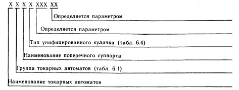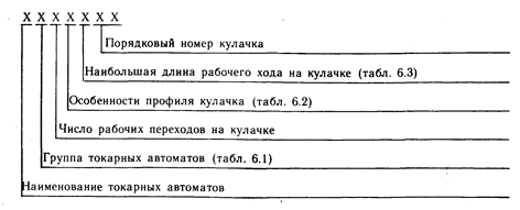 На основе выбранных признаков унифицированные кулачки револьверной головки и шпиндельной бабки кодируют с помощью шифра, состоящего из семи цифр (табл. 6.1–6.3):